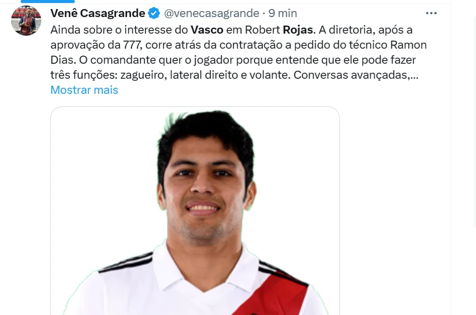 Há pouco, os jornalistas argentinos German García Grova e Cesar Luis Merlo informaram que o Vasco chegou a um acordo para a contratação do zagueiro Robert Rojas, do River Plate.
