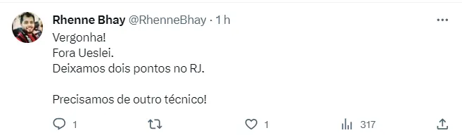 Torcedores do Rubro-Negro foram até as páginas do clube para manifestar suas insatisfações. O time até chegou a criar chances de gol com Thiago Heleno de cabeça, aos 26’, e Pablo também e cabeça, aos 30. Mas o que irritou mesmo o torcedor, foi como o time se retrancou na defesa esperando uma oportunidade somente no contra-ataque ou em bolas paradas para chegar ao gol.