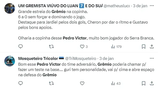 Na primeira fase da Copinha o Grêmio enfrentou o Serra Branca, da Paraíba. Ali, um dos jogadores do time paraibano chamou a atenção: o meia Pedro Victor, de apenas 17 anos.