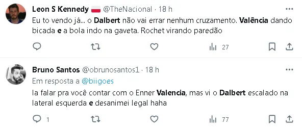 Já Dalbert sentiu a perna direita aos 30 minutos do primeiro tempo e saiu para a entrada de Nico Hernández. Segundo apuração do GE, o lateral deixou o campo devido a um “desconforto atrás do joelho direito”.