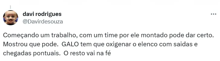 Outro que está com futuro indefinido é Rodrigo Caetano, diretor de futebol do Atlético, que está na lista de pretensões do Corinthians. Em entrevistas recentes, Caetano não cravou permanência no clube mineiro.