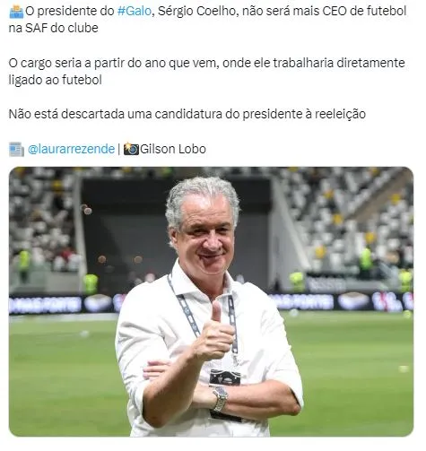 Uma delas, apontava o atual presidente do Atlético, Sérgio Coelho, como o nome mais forte para assumir a condição de CEO da SAF, trabalhando bem próximo do diretor Rodrigo Caetano, porém, o curso de tal planejamento foi alterado.