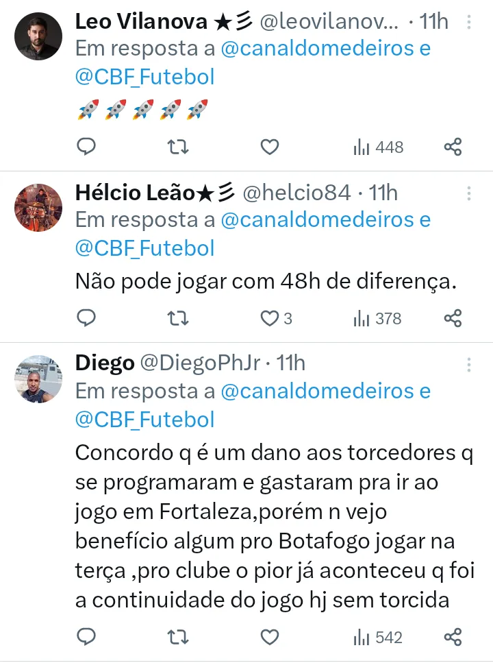No sábado (21), o Jogo contra o Furacão teve que ser encerrado porque os refletores estavam com defeito e a partida foi encerrada no domingo (22). Por causa disso, a CBF quer adiar o jogo do Botafogo contra o Fortaleza, o que desagradou a John Textor. Segundo o jornal o Globo, em reportagem de João Pedro Fragoso, o acionista majoritário da SAF, ligou para o de competições Julio Avelar pra reclamar e pedir a manutenção da data.