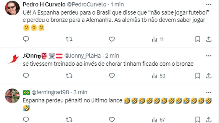 Internautas comemoram mais um revés da equipe espanhola, que perdeu para o Brasil nas semifinais.