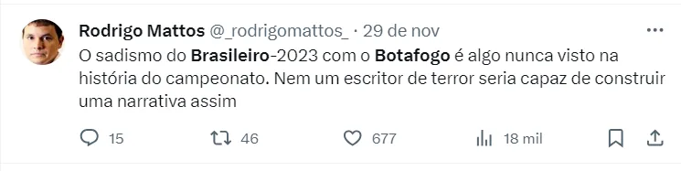 Parece coisa de filme, história de pescador, mas a trajetória do Botafogo no Campeonato Brasileiro de 2023 é algo que ficará marcado na história. A equipe carioca viveu dois extremos, onde saiu de melhor primeiro turno ao pior do returno perdendo uma vantagem de 14 pontos.