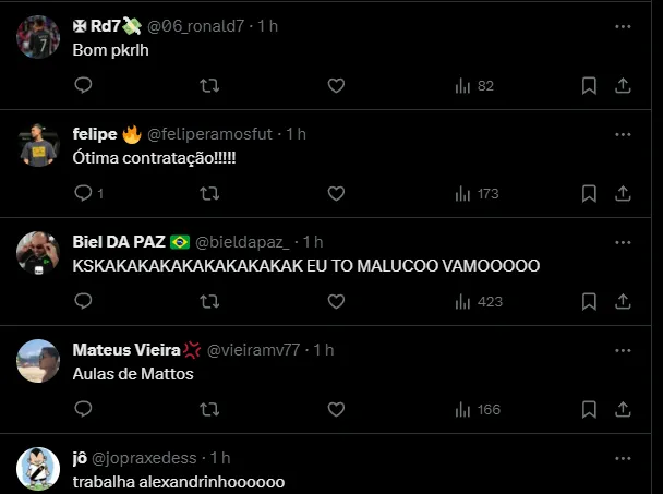 Com a chegada de Alexandre Mattos, a torcida do Vasco está mais animada com o planejamento: “Jogador que ninguém especulou, muito boa contração“, foi o comentário de um vascaíno.