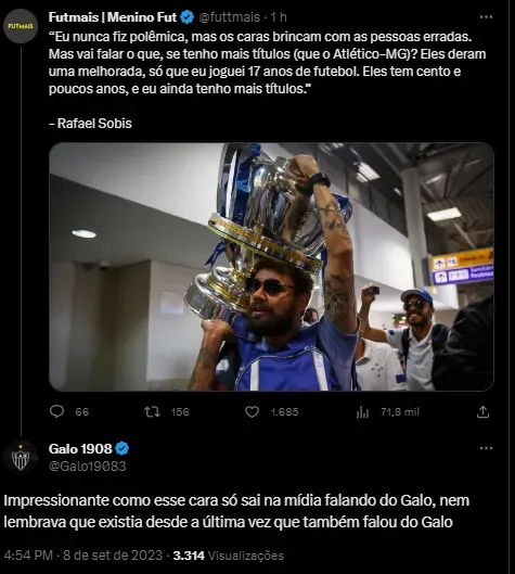 “Impressionante como esse cara só sai na mídia falando do Galo, nem lembrava que existia desde a última vez que também falou do Galo”;