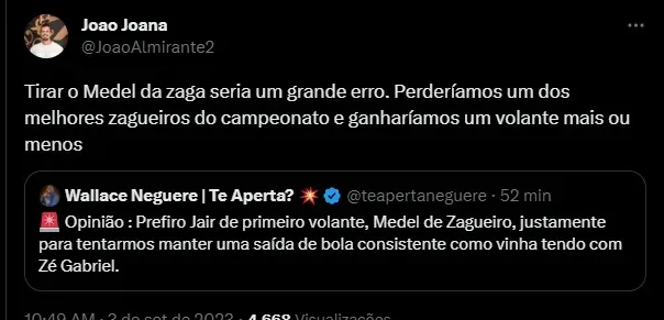Você concorda com Medel de volante?