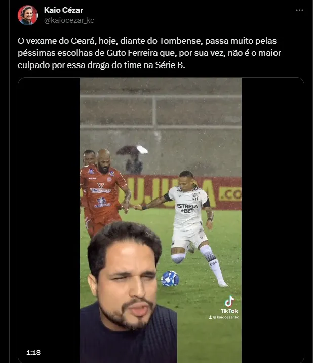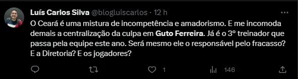 Querido pelos torcedores do Ceará em vários momentos, o treinador Guto Ferreira agora sofre com as críticas nas redes sociais após mais um jogo sem vencer. Muitos reclamam das alterações feitas pelo técnico durante o jogo e até mesmo na escalação inicial.