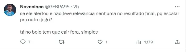O pênalti que não foi assinalado na partida gerou muitas reclamações por parte do Grêmio, com Renato Gaúcho classificando a situação como “inadmissível” e considerando ainda mais absurdo o fato de o VAR não ter sugerido a revisão da jogada.