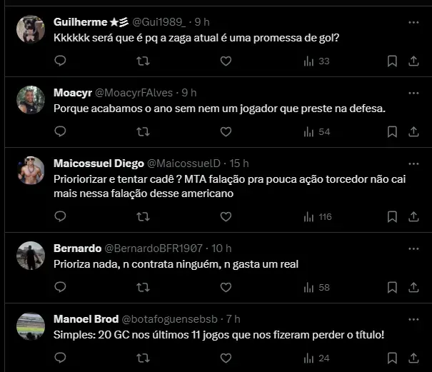 A equipe carioca possui atletas no elenco para suprir as saídas. Todavia, o time entende que, apesar das opções, reforços precisam chegar para elevar o nível do Botafogo.