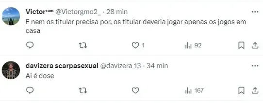“É o único atleta que já deixamos clara a não participação dele na primeira rodada. Ele se apresentou se recuperando de uma lesão no ligamento colateral medial, com o departamento médico. Porém, em atividades no campo desde o primeiro dia“, disse Cristiano em entrevista à Rádio 98FM.