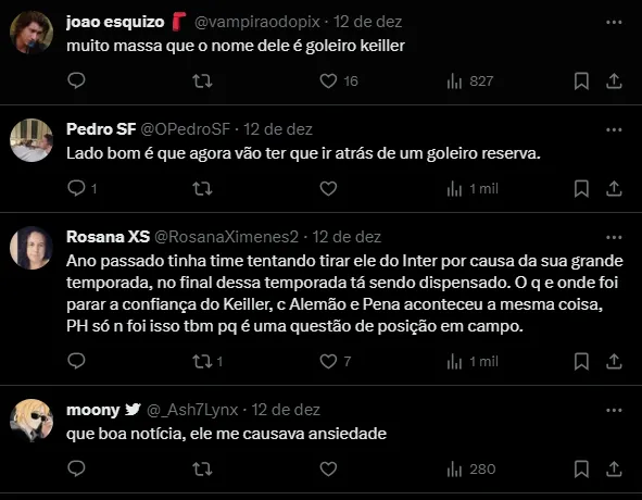 O entendimento da diretoria do Inter é o mesmo do staff de Keiller. Ambas as partes concordam que o goleiro deve buscar um novo destino. Há equipes do Brasil e do exterior interessadas no jogador.
