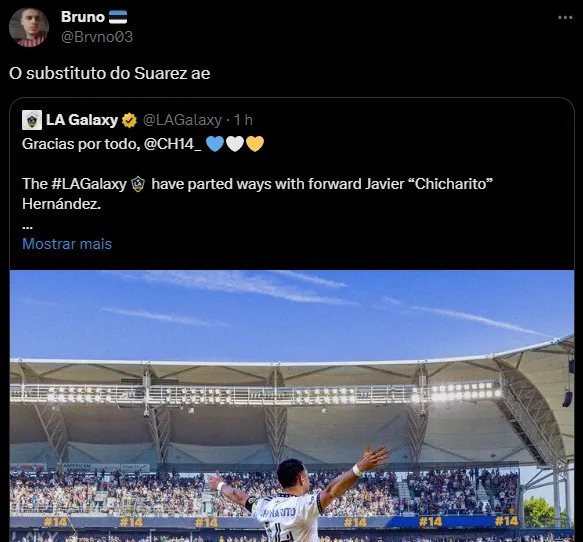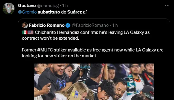 Nas redes sociais, os gremistas pediram a sua contratação para a diretoria do Grêmio, acreditando que Chicharito possa substituir Suárez no comando do ataque do Imortal.