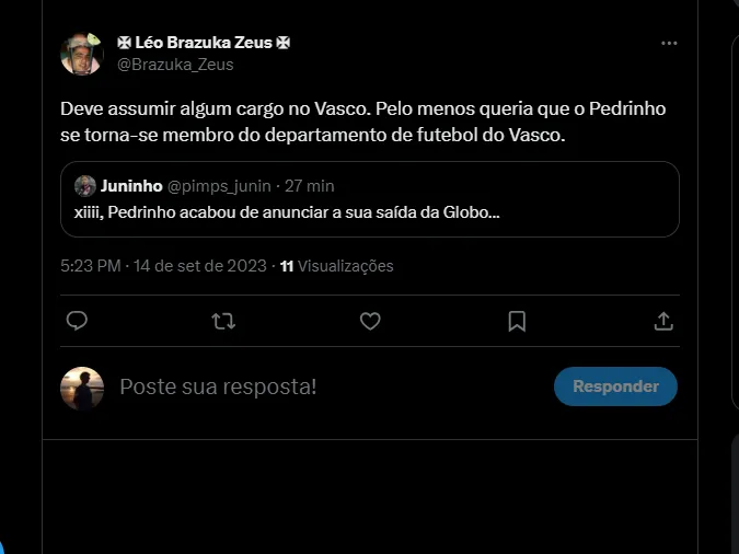 “Hoje estou saindo do grupo Globo em busca de novos projetos. Uma casa que me deu a oportunidade de mostrar meu conteúdo, que me permitiu comentar em jogos e programas e perceber que após a carreira de atleta é possível ser feliz nessa profissão”, destacou Pedrinho no início do comunicado oficial.