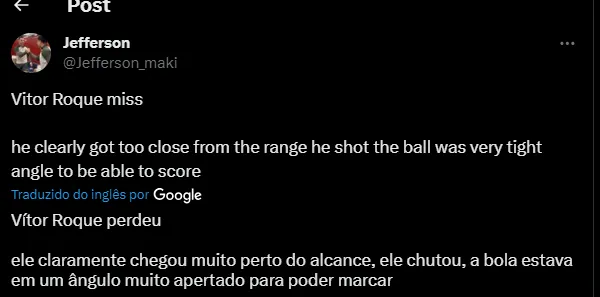 Logo na primeira partida pelo Barcelona, Vitor Roque teve três chances para balançar as redes, uma delas na cara do goleiro, mas acabou perdendo a passada e chutou fraco, com a bola passando rente a trave do goleiro.