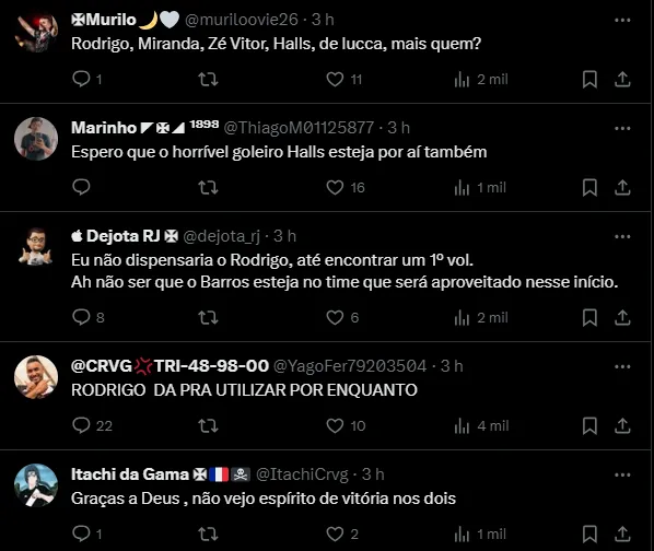 Já Rodrigo tem contrato válido até novembro de 2025, ou seja, quase dois anos com vínculo com a equipe do Vasco. As situações ‘mais rápidas’ são do zagueiro Miranda e do meia Marlon Gomes. Ambos têm contrato até junho de 2024.