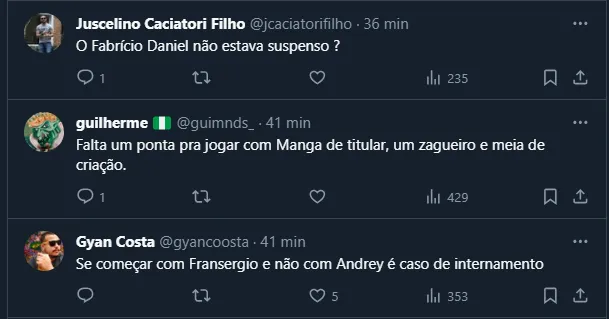 Por fim, é interessante destacar que o torcedor está empolgado para uma temporada segura, principalmente na Série B. No entanto, a lista de relacionados dividiu as opiniões no Paraná.