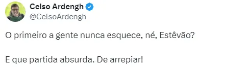 Além de entrar para as estatísticas históricas do Palmeiras, Estêvão viveu uma noite memorável diante da torcida do Verdão. Como titular pela primeira vez sob o comando de Abel Ferreira, o garoto foi um dos destaques da partida.