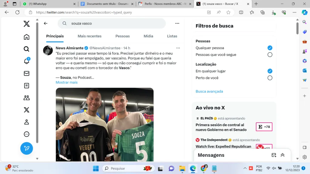 “Quero muito poder ajudar o Vasco, e eu quero porque sei que consigo, juntamente com outras peças que ainda vão chegar, dá para melhorar ainda mais. Se houver essa possibilidade, seria um prazer muito grande atuar ao lado dessa torcida de novo”, completou Souza, que está longe de São Januário há 13 anos.