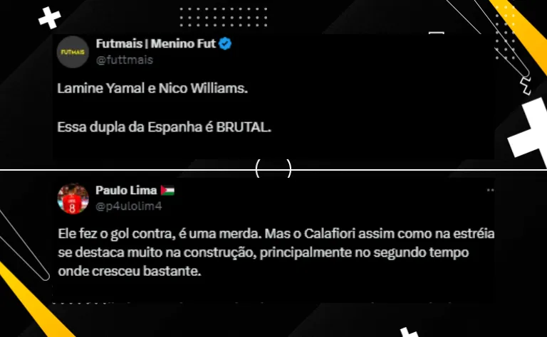 O único susto da Itália foi aos 20′, quando Crisante cruzou de forma perigosa, mas ninguém apareceu para finalizar. Como resposta, Nico Williams parou no travessão italiano. Aos 45′, Pérez tentou, mas Donnarumma fez nova defesa. Sem mais lances, o duelo ficou no 1 a 0.