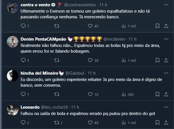 Isto é, por mais que o resultado não vá mudar a classificação dos comandados de Gabriel Milito, Everson deu uma leve “alfinetada” na defesa e tentou se eximir totalmente da culpa. O próximo jogo do Galão será domingo (19), contra o Bahia, na Arena MRV.