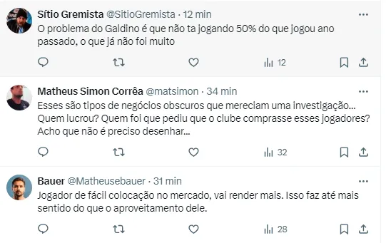 Em meio a isso, uma informação trazida pelo repórter Rafael Pfeiffer, da Rádio Guaiba, acabou chamando a atenção. Segundo ele, uma dupla do atual elenco não faz mais parte dos planos da equipe para a temporada.