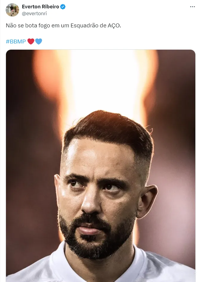 Everton Ribeiro utilizou as redes sociais para provocar o adversário após a vitória. Através de uma publicação no X, antigo Twitter, o meia destacou: “Não se bota fogo em um Esquadrão de Aço”, escreveu.