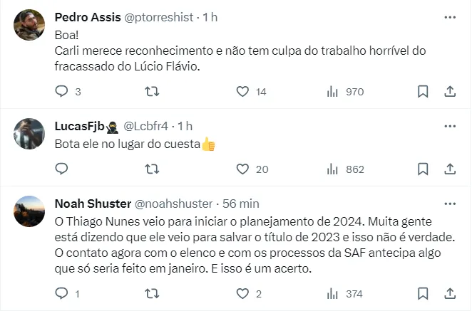 Em nota, Carli falou sobre a oportunidade: “Sigo me especializando e procurando entregar o máximo ao Clube. Sou ávido por desafios e esta nova função me motiva ainda mais. A gestão é o caminho que me identifico e quero crescer. Minha dedicação total é para contribuir na parte organizacional”, concluiu.