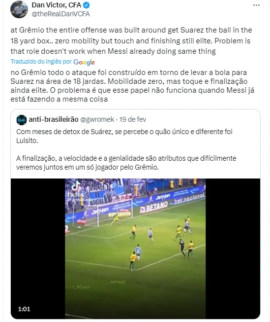 Twellman ainda destacou que esse problema do craque vem atingindo outros jogadores que poderiam se destacar mais. Ele começa citando a joia paraguaia Gómez, que se destacou no Pré-Olímpico, mas precisa se desdobrar para marcar pelo uruguaio e por Messi.