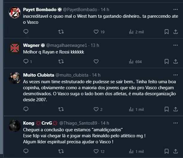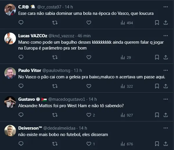 De qualquer forma, apesar de praticamente não ter atuado pelo Vasco, o assunto chegou até a torcida e repercutiu bastante, principalmente pelo “fator surpresa” de possivelmente vê-lo na melhor liga do mundo.