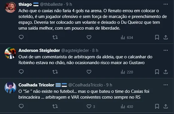 Gremistas falam sobre Mayk e arbitragem