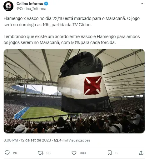 O Vasco vive uma luta nos bastidores do futebol quanto ao retorno da torcida ao Estádio de São Januário. Em uma decisão polêmica na Justiça do Rio, a casa do Cruz-Maltino não pôde receber os populares por meses, o que só agora deve mudar de fato. Enquanto esteve longe da Colina Histórica, o time carioca jogou uma vez no Maracanã, tentou levar as partidas à arena novamente, mas algo assustou alguns apaixonados nesta quinta-feira (14).