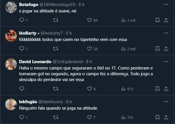 “Não estávamos acostumados, o campo estava muito complicado. Não é desculpa, mas é muito difícil, porque é muito rápido, é sintético, é outro futebol jogar em campos como esses, mas não é desculpa”, disse o treinador.