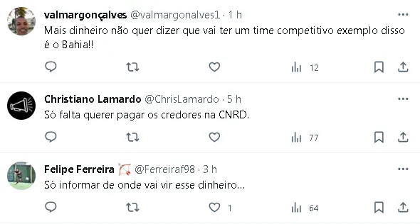 O presidente também mencionou a intenção de dobrar a folha salarial do Vitória para o próximo ano, visando ter um time competitivo que dispute os campeonatos regionais e faça uma boa campanha na Série A.