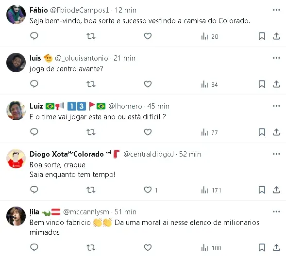 Fabrício expressou grande satisfação por se juntar ao clube. “É uma honra estar aqui. Todo atleta sonha em jogar em um clube de grande expressão como o Inter“, disse ele, agradecendo também a Andrezinho, ex-jogador do Internacional e atual diretor do Nova Iguaçu, por seu apoio e conselhos fundamentais nessa transição.