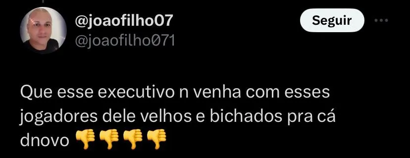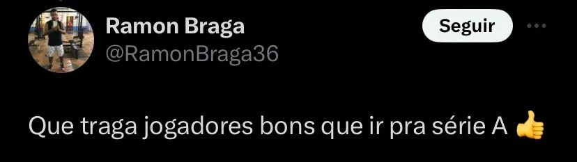 “Você pode contratar um jogador de nível altíssimo e chegar aqui, ou em qualquer outro lugar, e não render, mas nós estamos conversando com atletas que estão disputando G-4, para subir, estamos conversando com jogadores de Série A, que têm o desejo de vestir a camisa. A partir do momento que eu converso com o atleta e ele só fala das cifras, que esquece do projeto, esquece da camisa pesada, da torcida maravilhosa, que é o nosso 12º jogador, que empurra, lota e ajuda, isso fica um pouco mais complicado”, disse.
