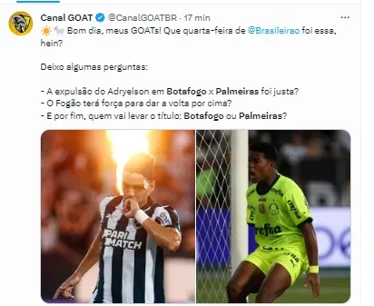 Na saída de campo, o jovem atacante, que já está vendido ao Real Madrid, falou sobre a reta final do Brasileirão. Ele deixou claro que o Bota ainda é o favorito ao título da Liga Nacional e que a vitória do time foi uma resposta aos gritos de campeão da torcida botafoguense no jogo.
