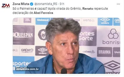 Mais precisamente, sobre uma fala do técnico Abel Ferreira, que após vencer o Botafogo por 4 a 3, cravou que só o Palmeiras conseguiria reverter um placar adverso contra o líder. Algo que o Imortal provou que não é bem assim. Renato foi abordado sobre a declaração.
