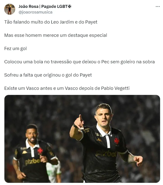 O atacante ainda elogiou Payet, que garantiu a vitória do Vasco. Para Vegetti, a vitória foi fundamental para dar um respiro ao Clube, que segue lutando para se firmar na elite nacional.