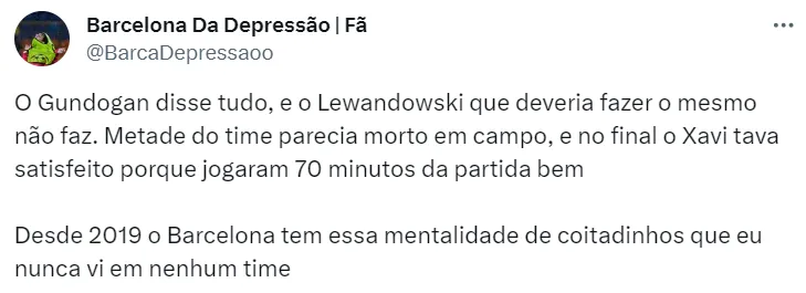 Quem não ficou nada feliz foi o autor do gol do Barcelona. Além do resultado ruim, a apatia dos colegas de equipe após o término da partida incomodaram Gundogan, que não escondeu o descontentamento da imprensa.