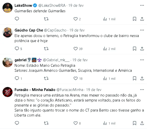 Você concorda que a Ligga Arena passe a ter o nome de Mario Celso Petraglia?