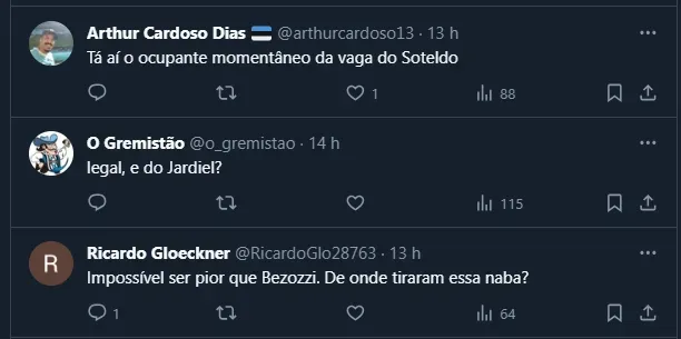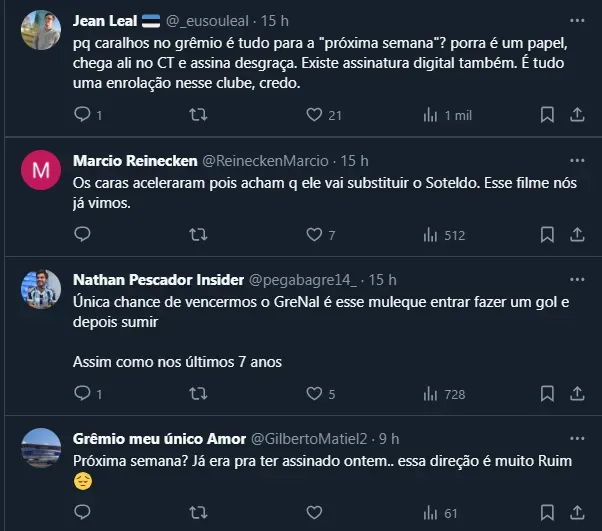 Por fim, apesar da renovação de Gustavo ter sido comemorada pela torcida do Grêmio, o “timing” da negociação causou polêmica, já que o torcedor criticou Guerra por acertar o acordo logo após a lesão de Soteldo.