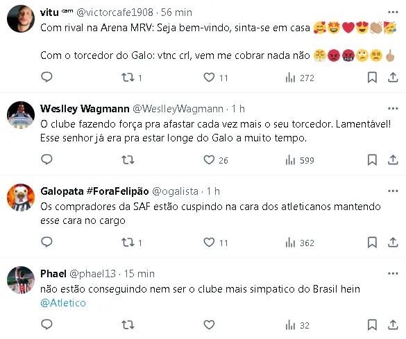Apesar do clima tenso inicialmente, a situação foi controlada pelo staff do Galo, que agiu para acalmar os ânimos dos envolvidos.