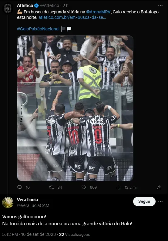 O Atlético Mineiro enfrenta o Botafogo neste sábado (16) na Arena MRV, encerrando a 23ª rodada da Série A do Campeonato Brasileiro. O Galo entra em campo ocupando a 9ª posição na tabela, com 31 pontos, enquanto o Botafogo é o líder isolado com 51 pontos. O Atlético, na pior das hipóteses, pode perder uma posição na classificação, enquanto o Botafogo pode ver sua vantagem diminuir para o 2º colocado para sete pontos.