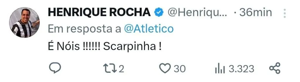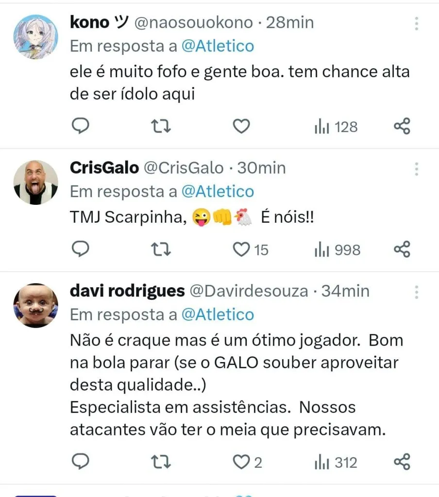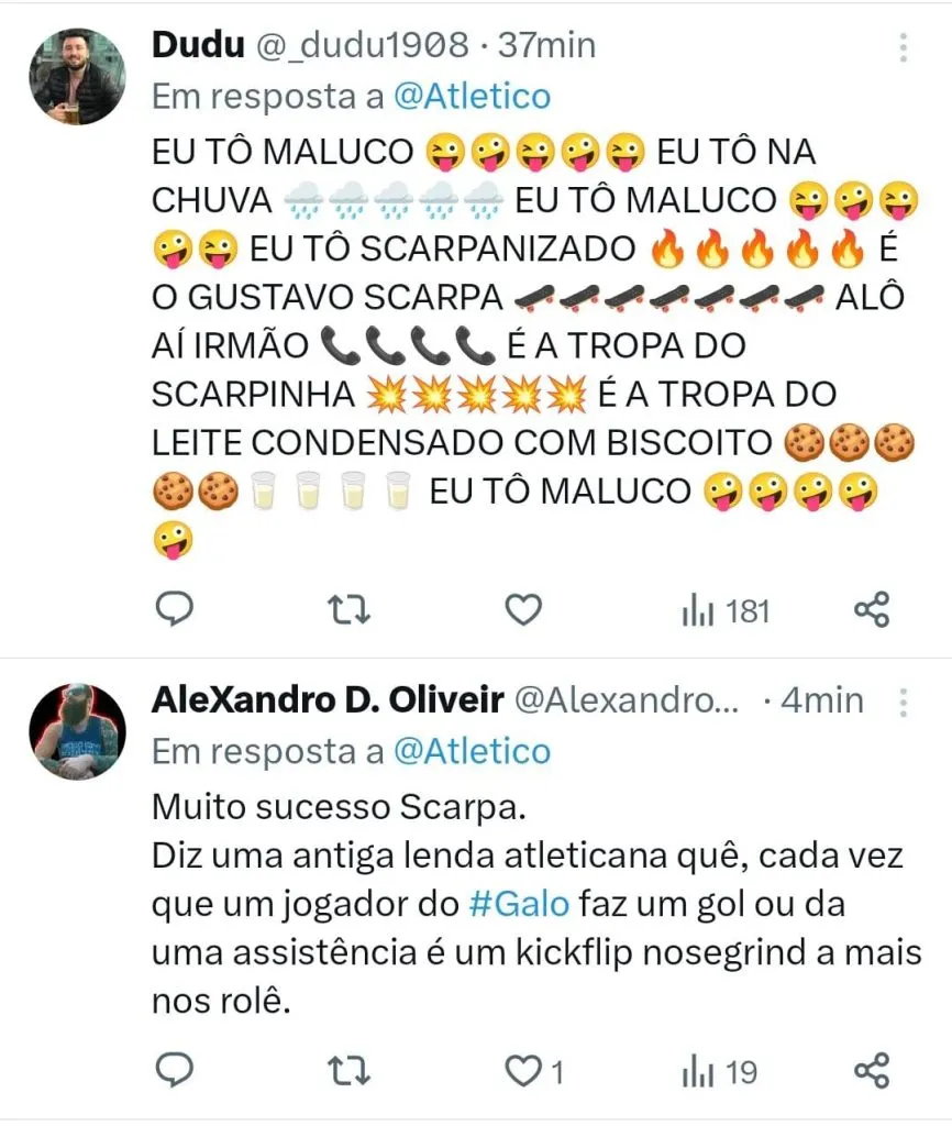 Através das redes sociais o jogador mandou o seu primeiro recado para a torcida atleticana e demonstrou Alegria investir o manto alvinegro. O contrato de Scarpa com o Galo inicia a partir de janeiro de 2024.
