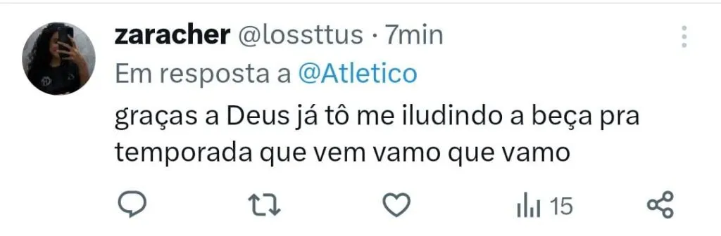 “E aí massa atleticana, firmeza? Tô aqui pra dizer que será uma honra vestir a camisa do Galo, tô muito feliz com essa oportunidade e espero encontrá-los em breve aí. Muito obrigado já pelo carinho, pelo apoio demonstrado nas redes sociais. E é isso aí tô chegando em nós.”.