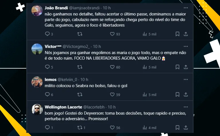 Atuando no Mineirão, o Cabuloso atuou diante de mais de 50 mil torcedores e tinha a expectativa de entrar no G-4 em caso de vitória, mas o duelo terminou empatado por 0 a 0 e não movimentou o placar.