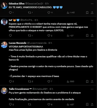 “Foi uma vitória simbólica também, pois após quatro vitórias, pudemos confirmar essa retomada da confiança da torcida no trabalho da equipe. Esse é o grande significado para essa torcida”, completou.