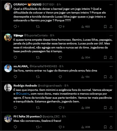 Cruzeirenses comentam jogo nas redes sociais